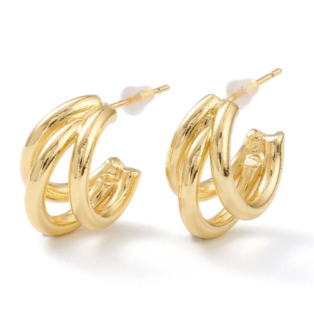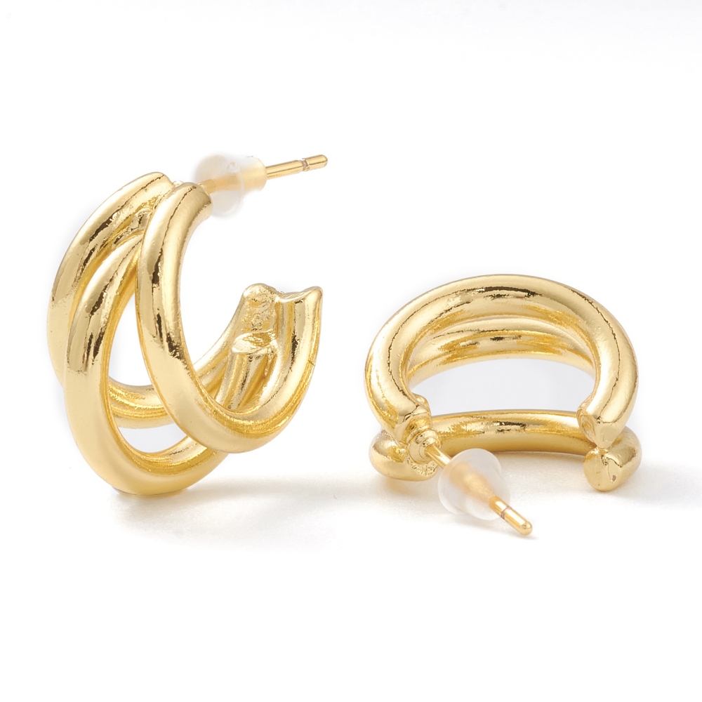 Pendientes de medio aro de división, Plateado de larga duración, chapado en oro, tamaño 16x11mm