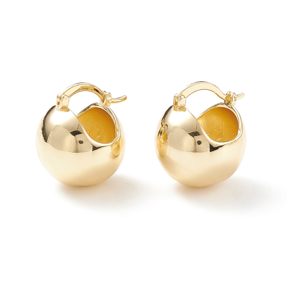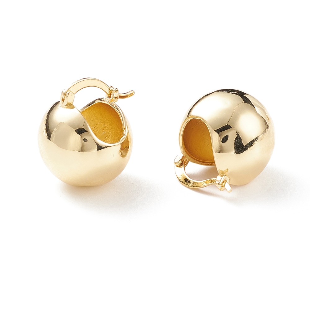 Aretes de aro gruesos en forma de bola redonda, chapado en oro. Tamaño 19.5x20mm