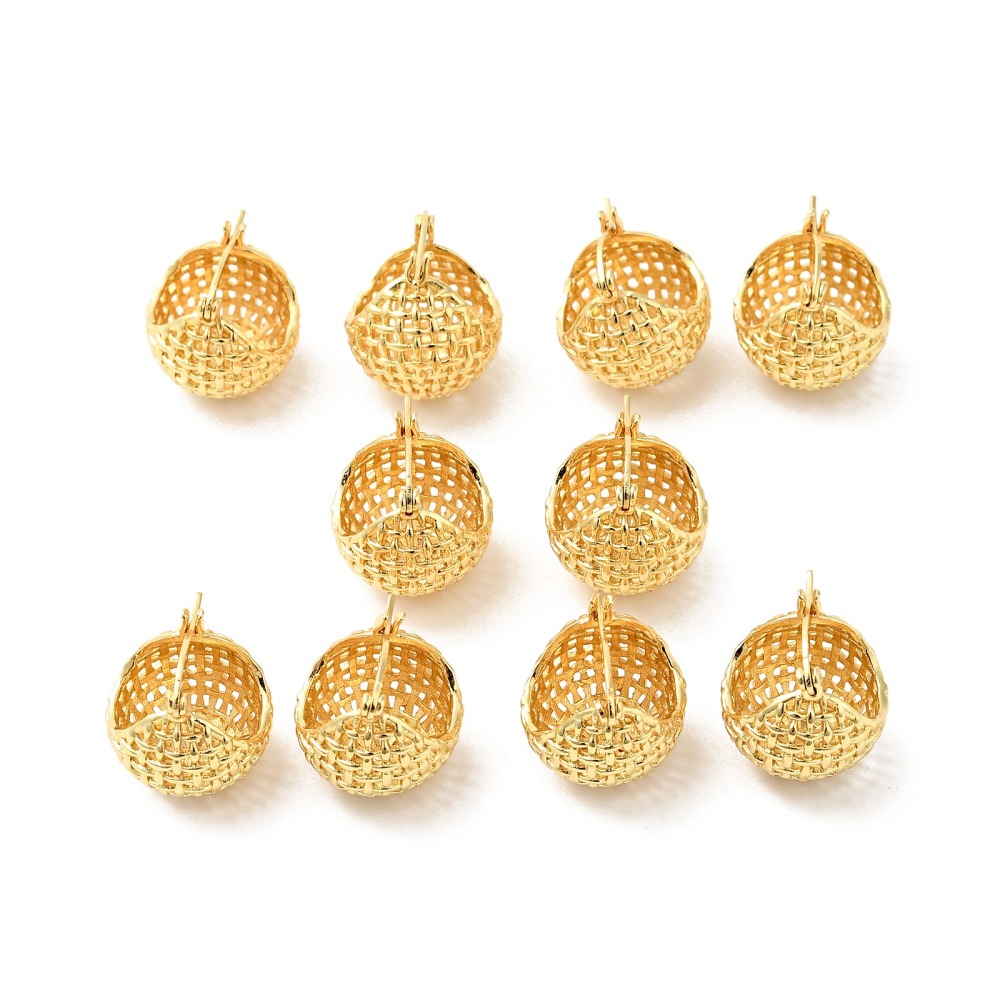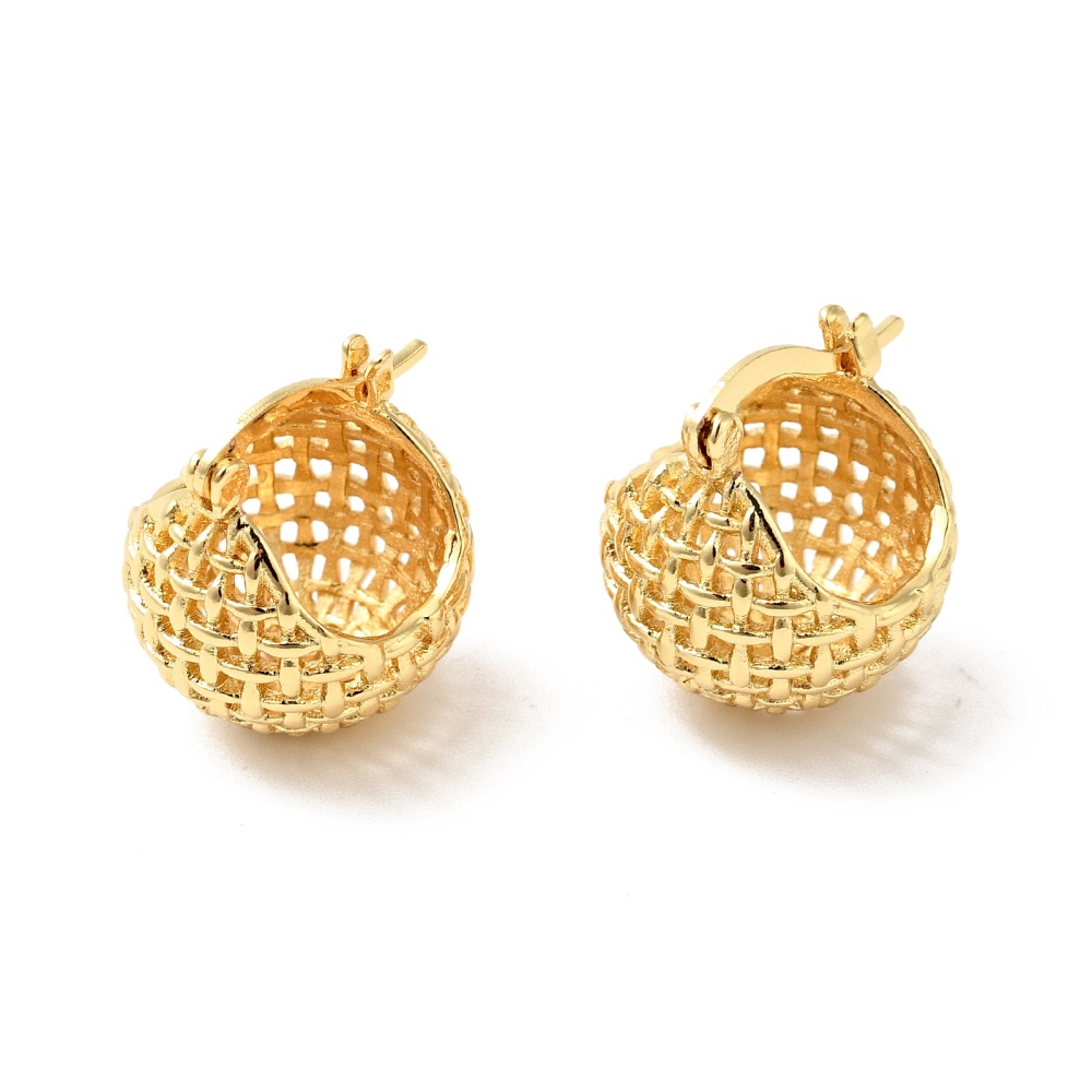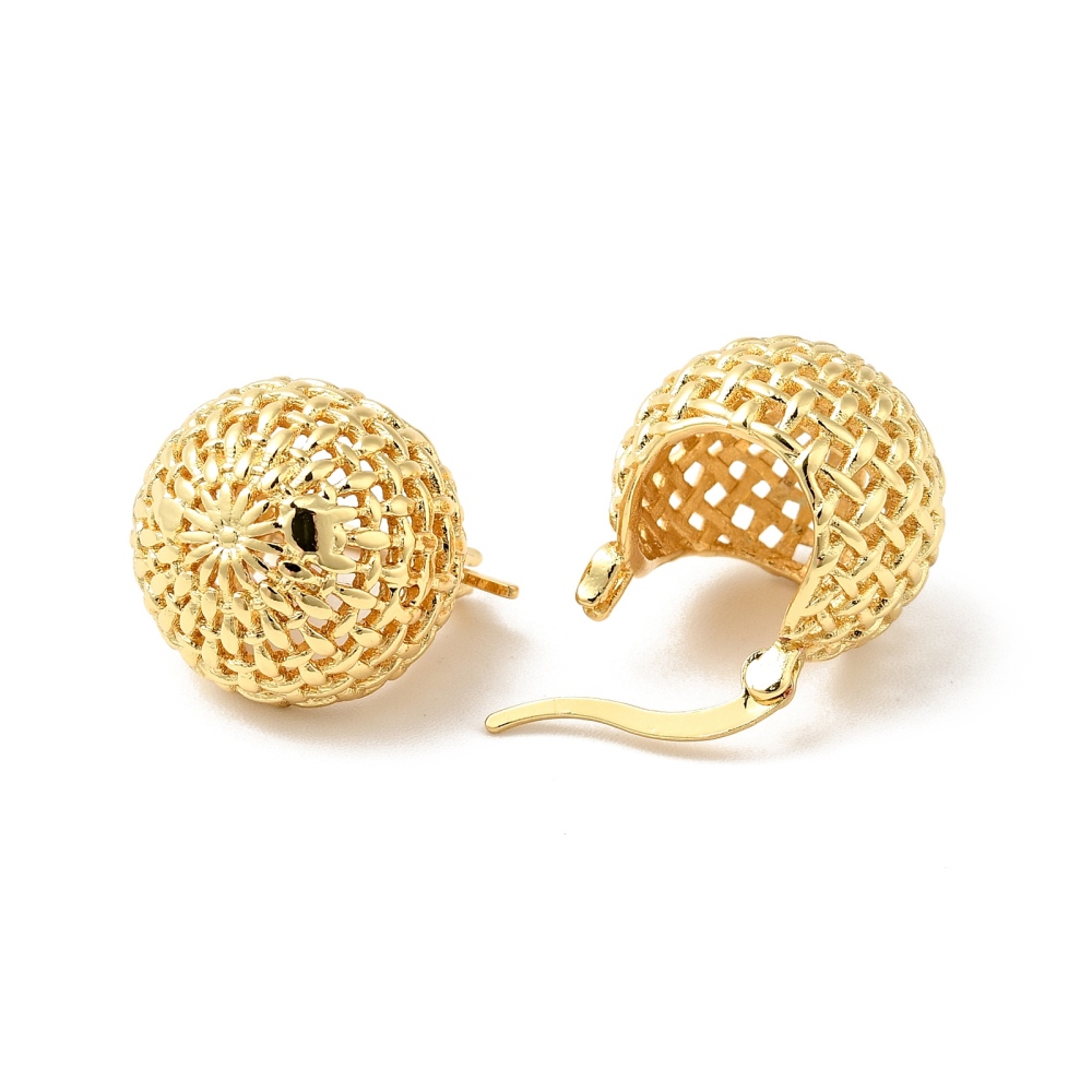 Aretes redondos de aro, forma de red, chapado en oro. Tamaño 16.5x14x14.5mm