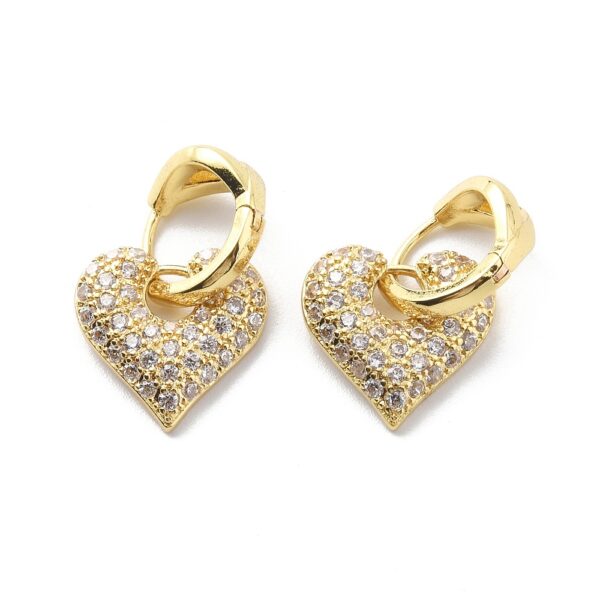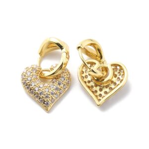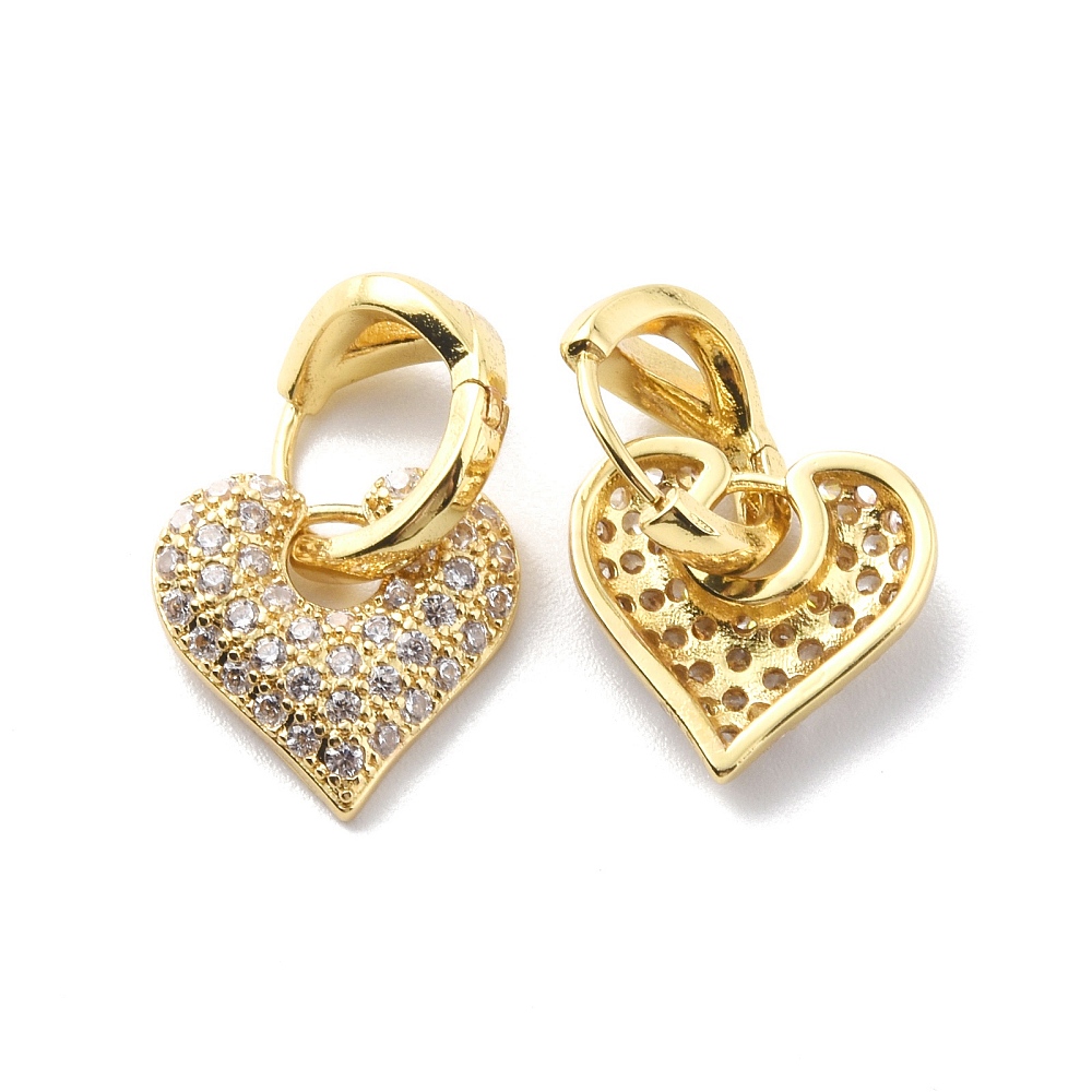 Aretes colgantes de corazón con circonita cúbica transparente, chapado en oro. Tamaño 22mm