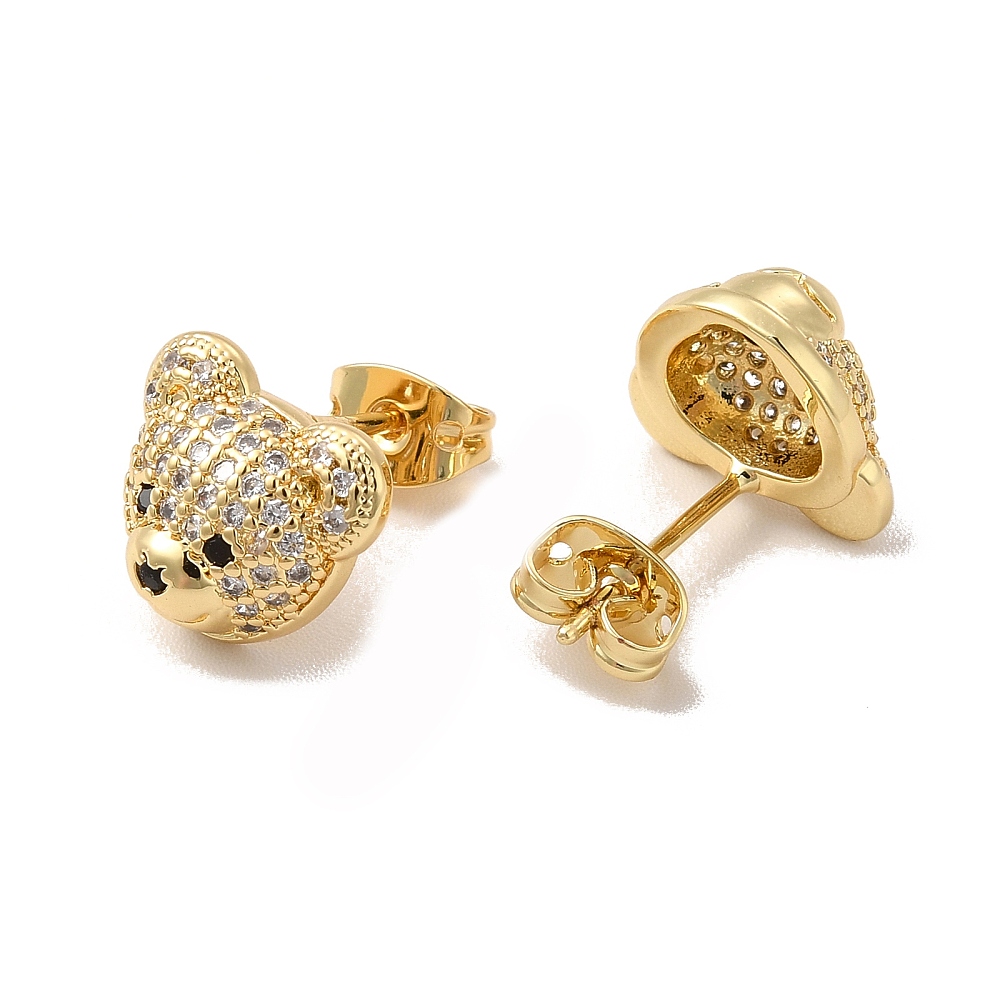 Aretes en forma de oso con circonita cúbica, chapado en oro. Tamaño 10x12mm