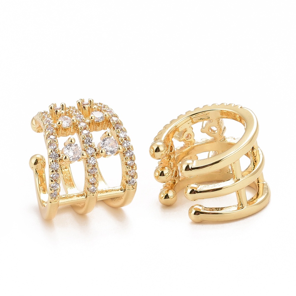 Ear Cuff circonitas cúbicas transparentes, chapado en oro. Tamaño 16x14x13mm, diámetro interior: 10.5 mm