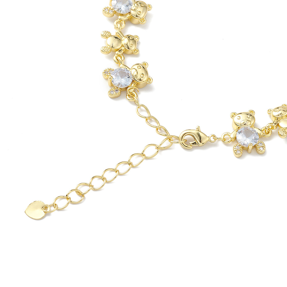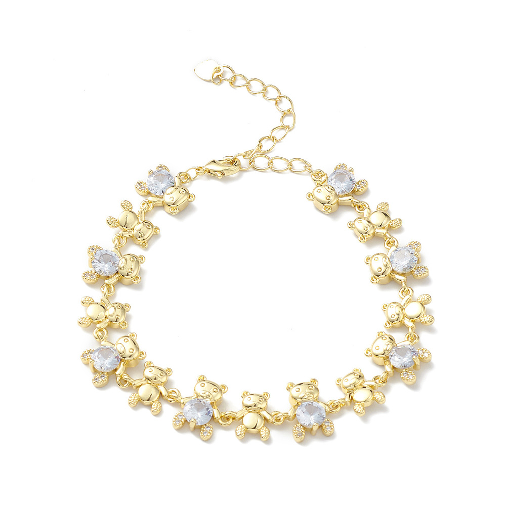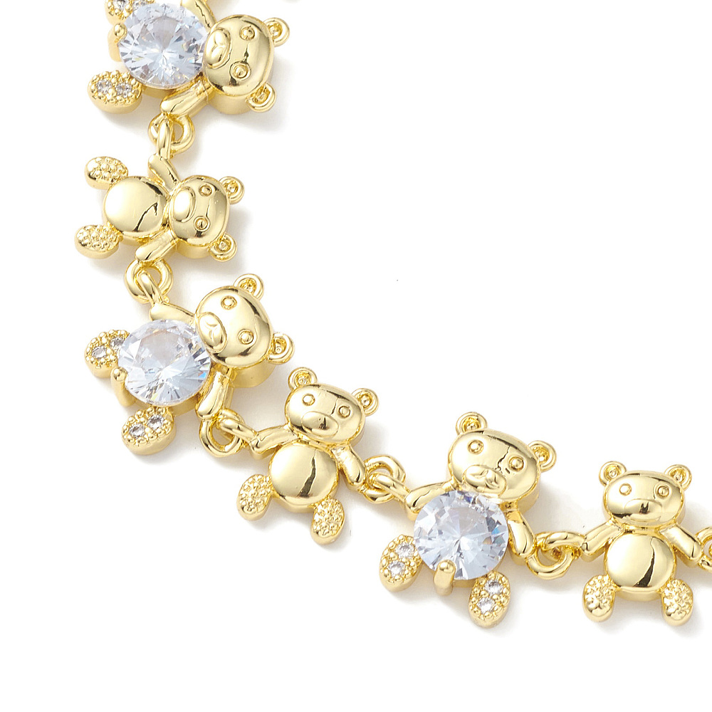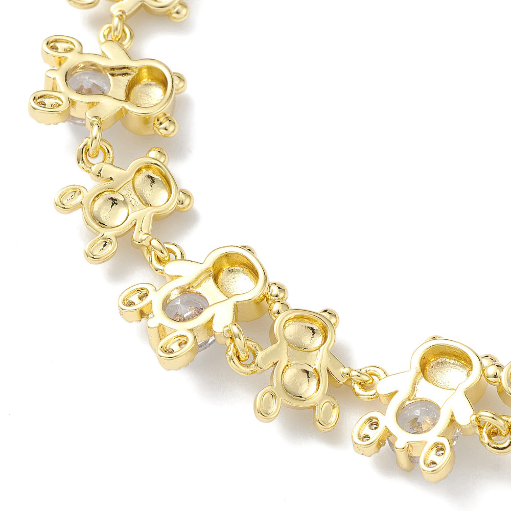 Pulsera de cadena con eslabones de oso y circonitas cúbicas transparentes, chapado en oro. Tamaño (19 cm)